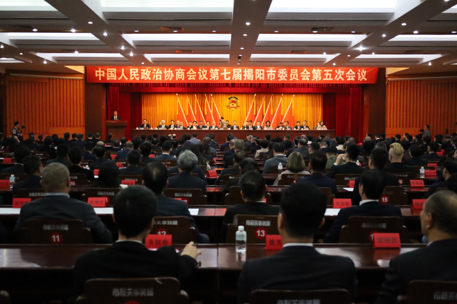 中国人民政治协商会议第七届揭阳市委员会第五次会议圆满完成各项议程,于2月4日下午在市区闭幕。会议号召,全市政协各参加单位、各级组织和广大委员,要更加紧密地团结在以习近平同志为核心的党中央周围,以更加昂扬的姿态、更加务实的作风,凝心聚力、履职尽责,为全力建设产业强市、和美揭阳,加快打造粤东高质量发展新增长极作出贡献。