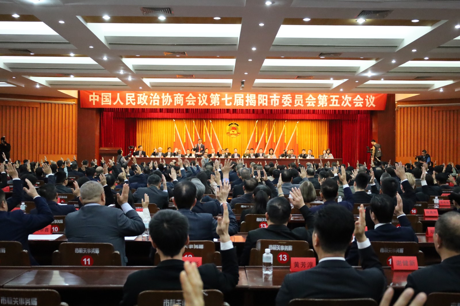 大会宣布政协第七届揭阳市委员会常务委员会部分组成人员选举结果,表决通过《政协第七届揭阳市委员会第五次会议决议》。