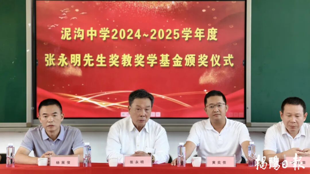 张仲哲(左二)参加泥沟中学奖教奖学基金颁奖活动。